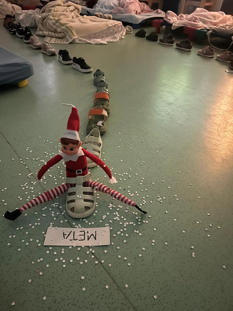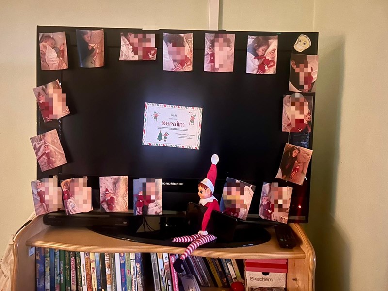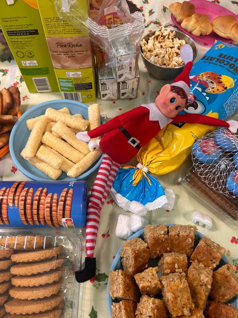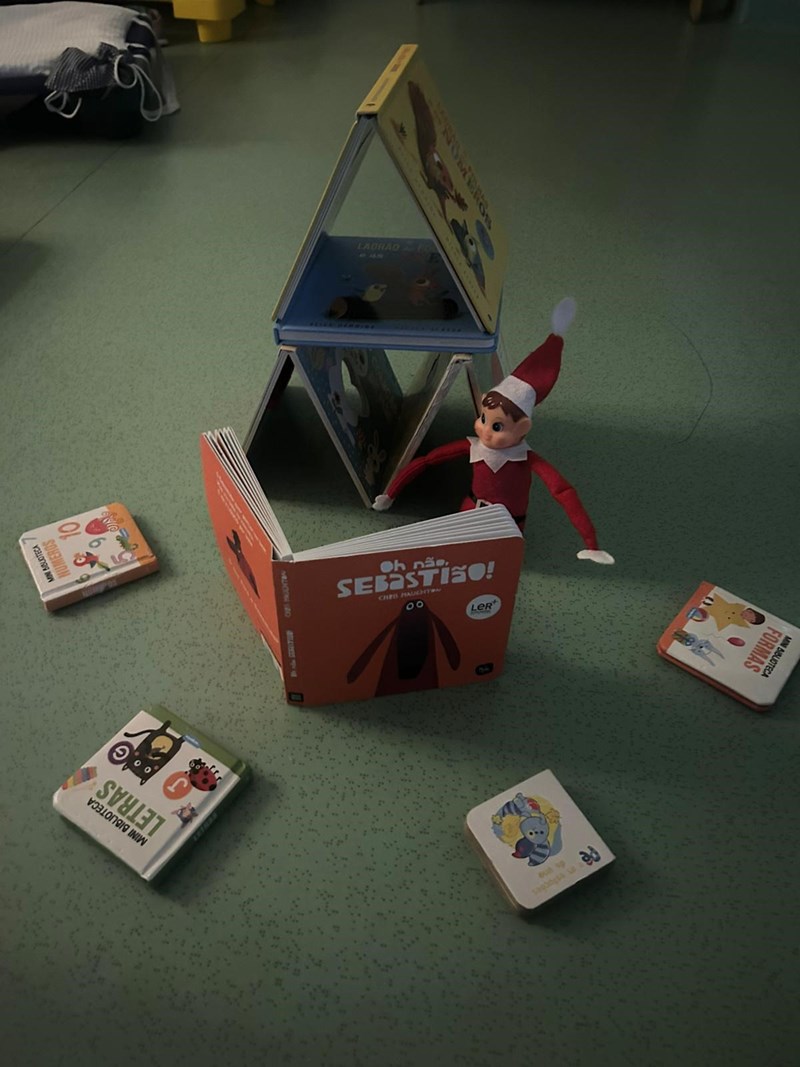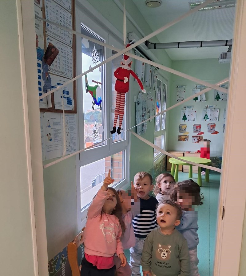 Diariamente e sempre durante a hora da sesta, o Elfo tornou-se uma presença habitual nas salas durante este mês e foi “pregando" várias partidas aos nossos meninos. Fértil em imaginação, o nosso elfo de Natal foi fazendo das suas: ora desarrumava a sala, ora fazia pinturas faciais, ora brincava com os brinquedos dos meninos, ora espalhava fotografias dos meninos e meninas a dormir pelas salas e até um comboio fez com o calçado dos nossos alunos, partidas que suscitaram sempre reações muito engraçados dos nossos alunos que ao acordar se questionavam logo sobre o que teria “aprontado” desta vez o elfo Serafim.