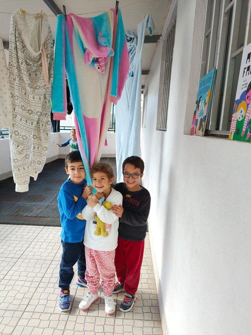Com os seus pijamas coloridos, as crianças do Externato Pica-Pau da Serra da Amoreira e do Jardim da Amoreira, acompanhadas por professores e funcionários, envolveram-se em diversas atividades ao longo do dia. O objetivo foi, uma vez mais, sensibilizar para a importância da solidariedade e recordar que todas as crianças têm direito a crescer numa família onde se sintam amadas e protegidas.