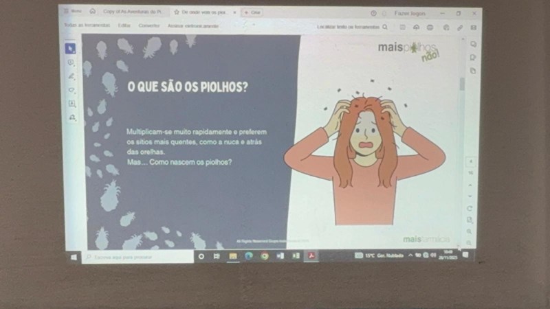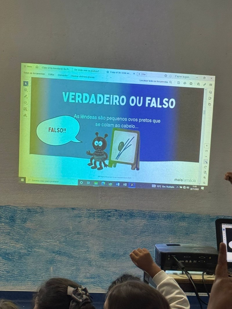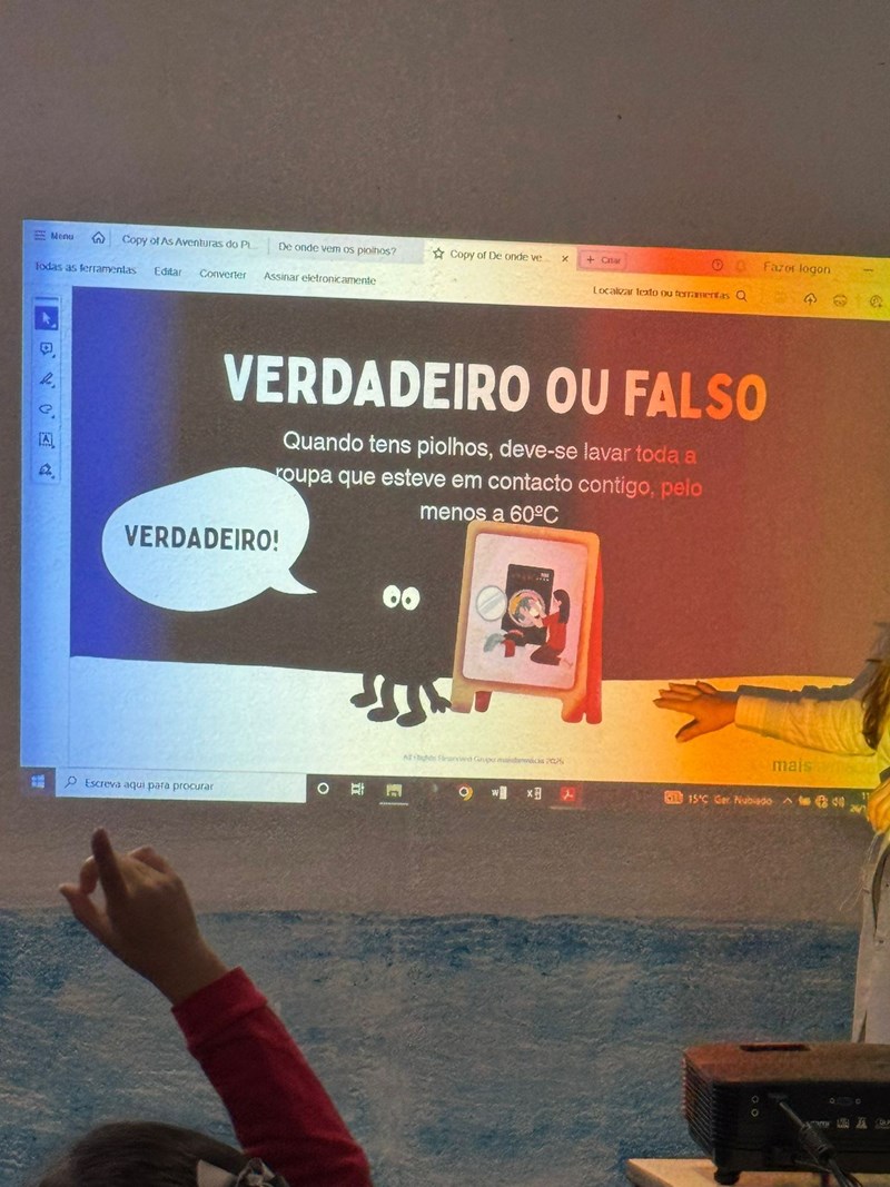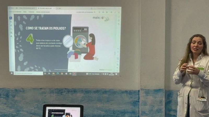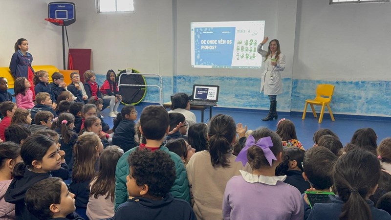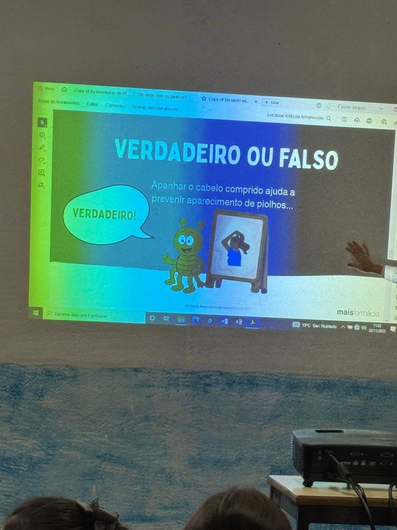 Durante a sessão, foi também sublinhada a importância de informar a escola sempre que há casos de piolhos em casa, contribuindo para uma deteção e atuação mais rápida. As crianças conheceram igualmente técnicas de prevenção e observaram demonstrações práticas sobre a aplicação correta do champô antipiolhos e a higienização adequada da roupa.