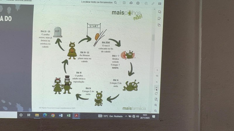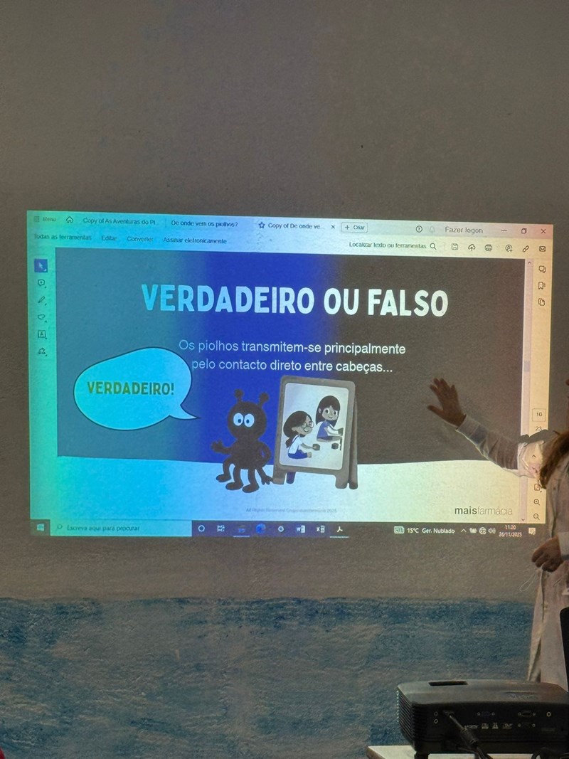 Dirigida às crianças do pré-escolar e do 1.º ciclo, a atividade abordou, de forma simples e acessível, o que são os piolhos, como se transmitem e como se trata corretamente uma infestação. Os profissionais da farmácia desmistificaram ainda vários mitos frequentes, explicando que os piolhos não voam, não saltam e não nadam, e reforçaram que a pediculose não está ligada à falta de higiene.