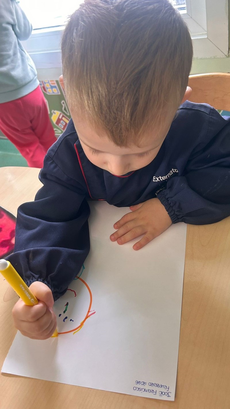 Posteriormente, a turma foi desafiada a fazer o seu primeiro autorretrato. Os resultados foram verdadeiramente surpreendentes, pois, com orientações simples, conseguiram representar-se de forma muito significativa.