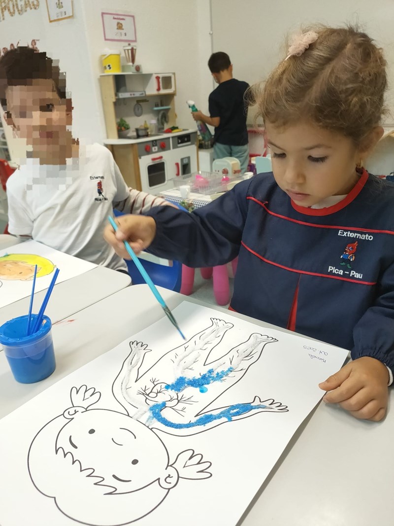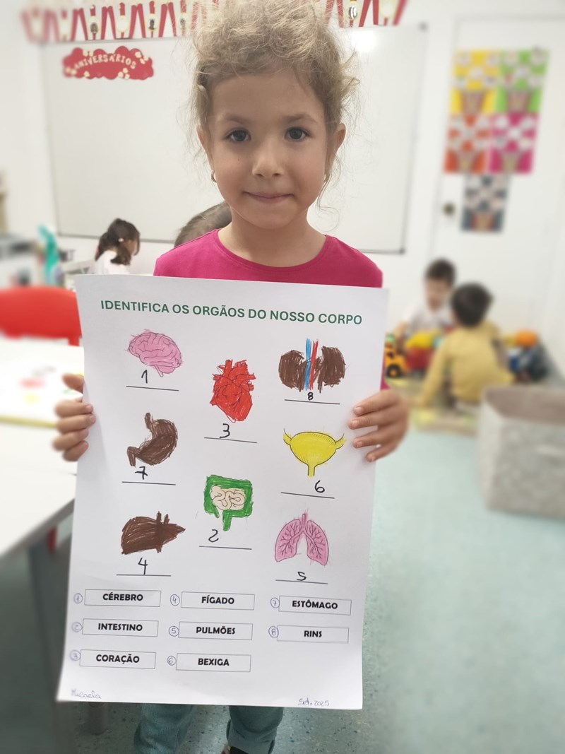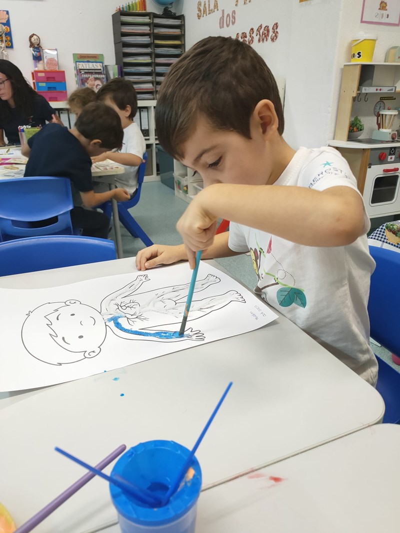 Na sala dos Pipocas (5 Anos A), as crianças demonstraram grande curiosidade em conhecer melhor o seu próprio corpo, colocando várias questões sobre o tema. Assim, surgiu o projeto “Vamos descobrir o nosso corpo”, com o objetivo de ampliar o conhecimento sobre o corpo humano, a higiene e a saúde.
